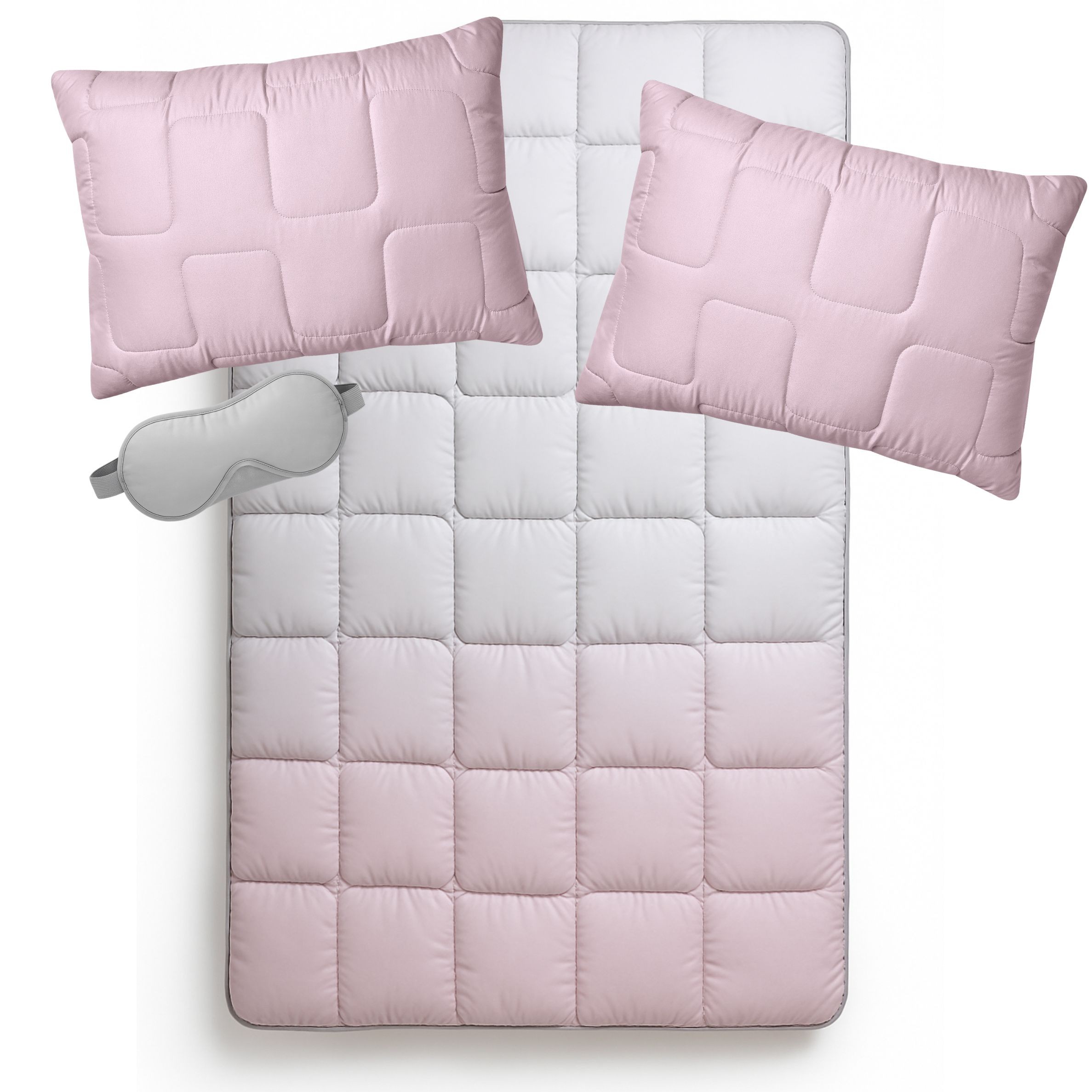 Зимнее одеяло размером 200×220 см хорошо сохраняет тепло, создавая комфортный микроклимат во время сна. Подушки 50×70 см обеспечивают удобную поддержку головы и шеи. Маска для сна помогает защититься от света и способствует более глубокому и спокойному отдыху.