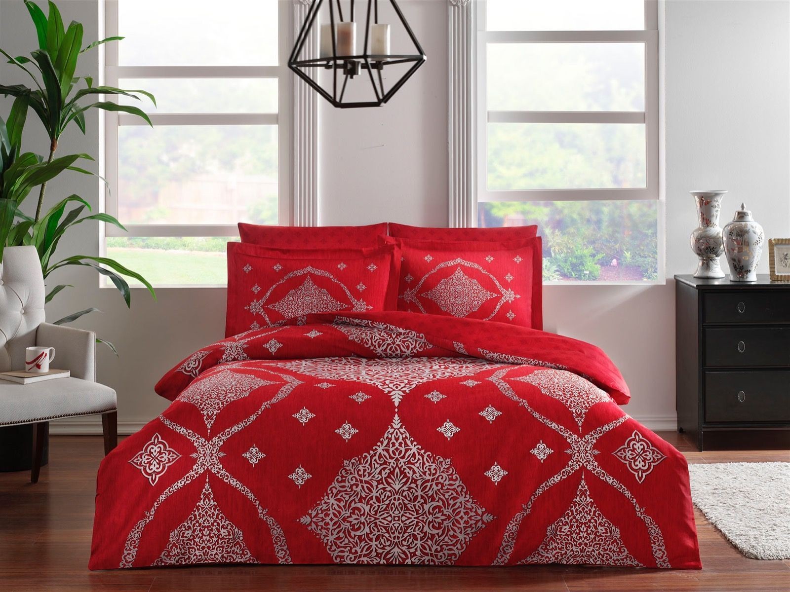Комплект постільної білизни TAC DELUX SATEN Aira Kirmizi — розкішний комплект із 100% бавовняного сатину насиченого червоного кольору. М’яка та шовковиста тканина забезпечує комфортний сон та яскравий акцент у інтер’єрі спальні.